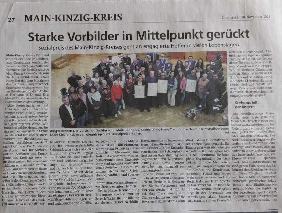 Hurra! Wir sind mit dem Sozialpreis des Main-Kinzig-Kreis ausgezeichnet worden!